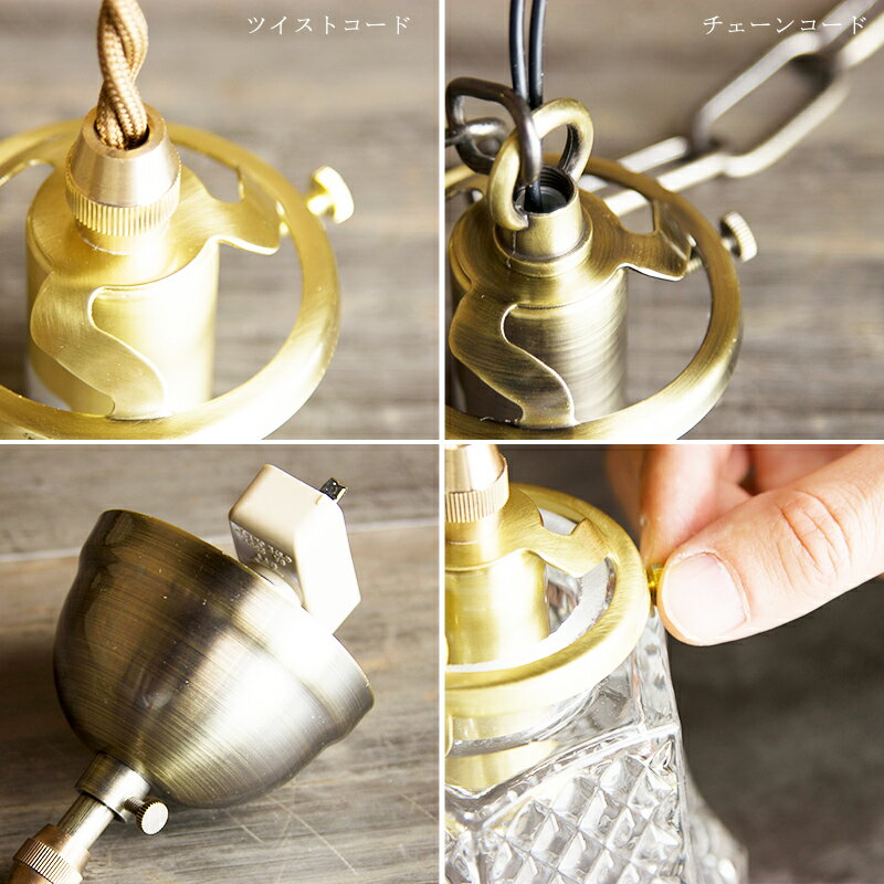 大正ロマンをイメージした和室にも合うアンティークな灯具は、 インダストリアル系、ナチュラル系などお部屋の雰囲気に合わせてツイストコードとチェーンコードからお選びいただけます。