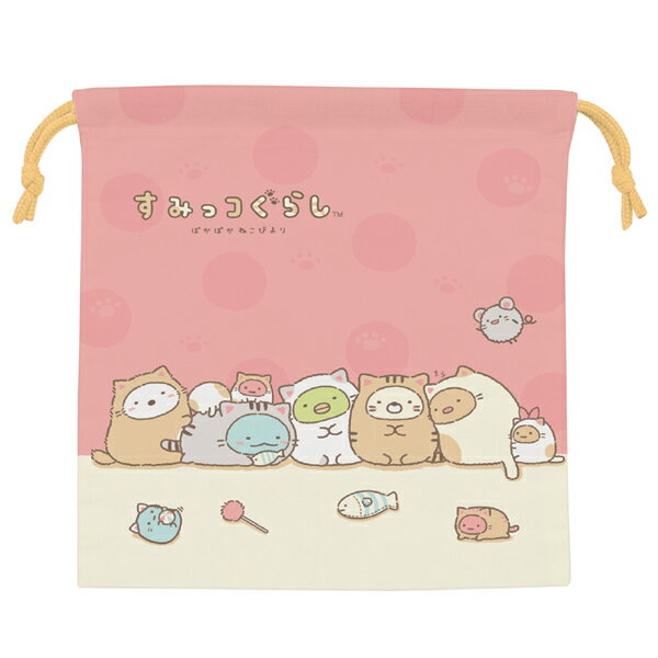 お弁当袋 マチ付きランチ巾着 すみっコぐらし ぽかぽかねこびより 子供用 キャラクター ( 巾着袋 巾着ポーチ 給食袋 給食セット入れ 巾着 子ども用 子供 子ども 小物入れ )【5000円以上送料無料】