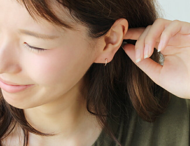 )※モデル着用はゴールドです おしゃれをもっと、楽しみたいから・・! K10カラーゴールドイヤリング・エポワール もう痛くない!落とさない! まるでピアスみたい!? 耳が痛くならない フープタイプのイヤリングをおつくりしました! 「クリップタイプのイヤリングだと、 一日中つけていると耳が痛くなっちゃう・・」 「気づいたら、イヤリングがとれてなくなっちゃった・・ お気に入りだったのに〜 」 そんなお悩みを解決するのが こちらのイヤリング。