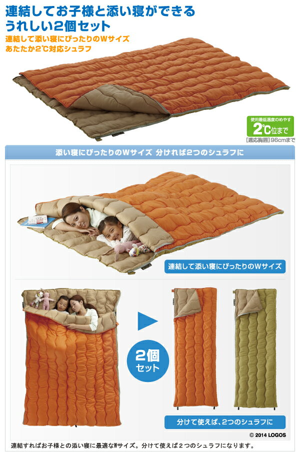寝袋2つがセットになったので、2つを連結してダブルサイズ寝袋になります♪