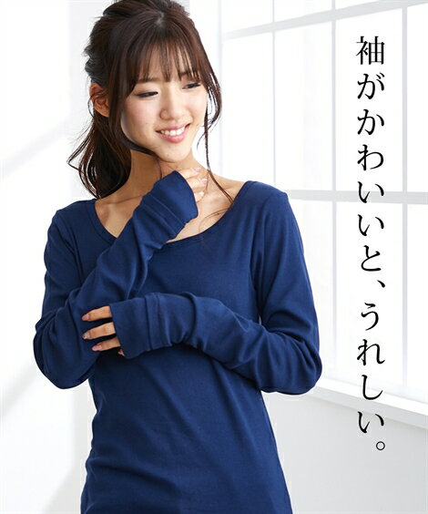 肌着 インナー (S-L) 綿100% 指穴付き ロング丈 長袖 インナー 2枚組 ニッセン コットン 重ね着 おしゃれ かわいい 冬 秋 春夏 綿100 綿 お肌に優しい コットン まとめ買い お買い得 福袋