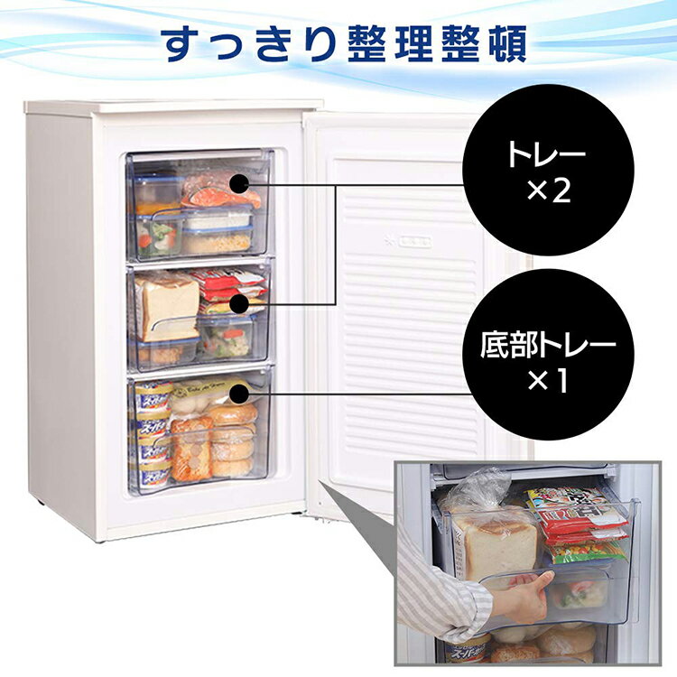 ■種類ノンフロン冷凍庫■冷媒R600a■ドア数1■トレー3■定格内容積※160L■商品サイズ(cm)幅約48×奥行約50×高さ約85■定格電圧AC100V(50Hz/60Hz)■定格入力(50Hz/60Hz)55/59W■年間消費電力量※2212kWh/年■冷凍室の性能(JISC9607規定による)記号:フォースター冷凍室負荷温度:-18℃冷凍食品の保存期間の目安:約3か月※食品の種類・冷凍方法・店頭での保存状態・周囲温度などによって変わります。