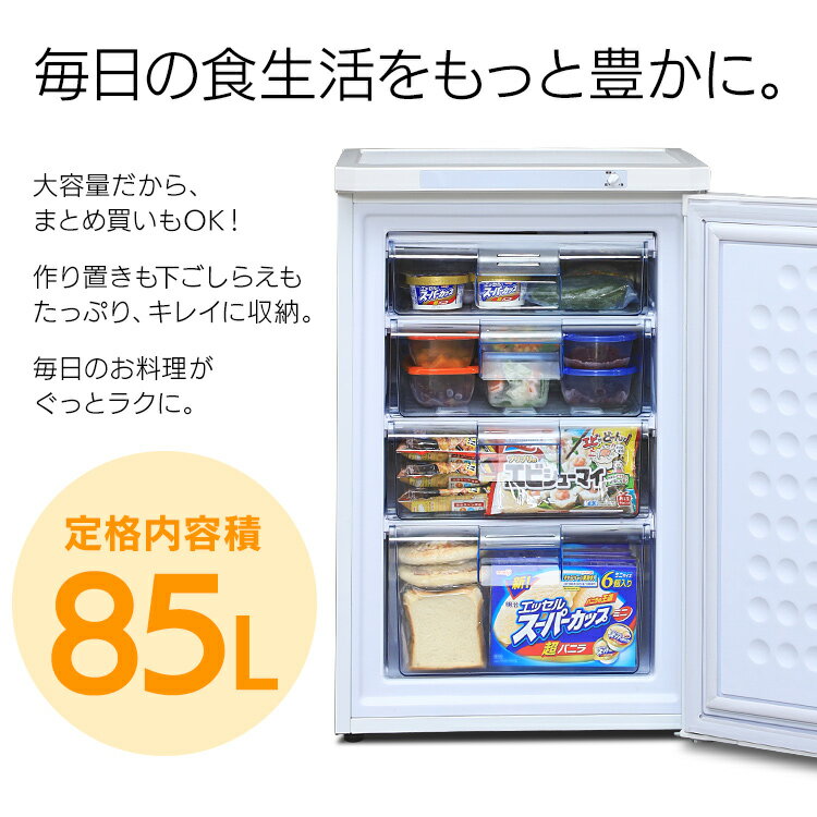前開きで、庫内の整理がしやすい引き出し式冷凍庫です。